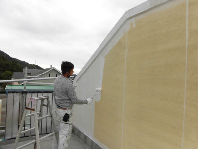 下塗りをハケ・ローラーで塗布していきました。(屋上部分)
